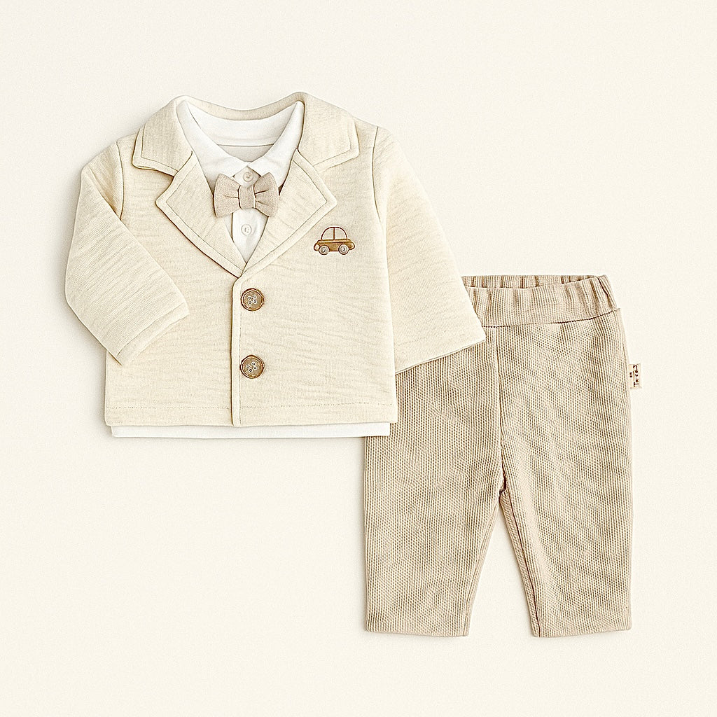 Setul este compus din bluza cu capse, bluza tip body si pantaloni