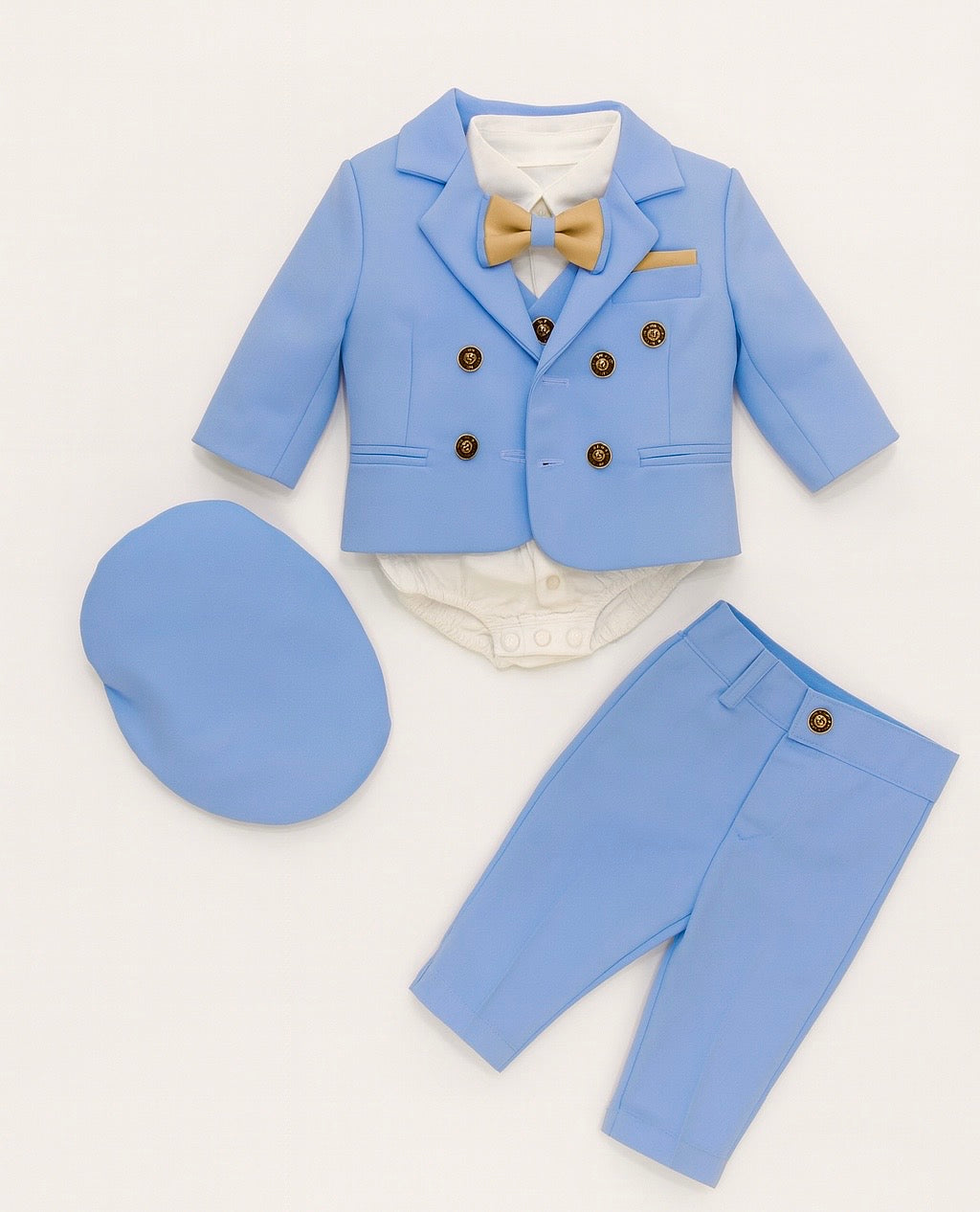 Costum compus din basca, papion, vestuta, camasa tip body, pantaloni si sacou