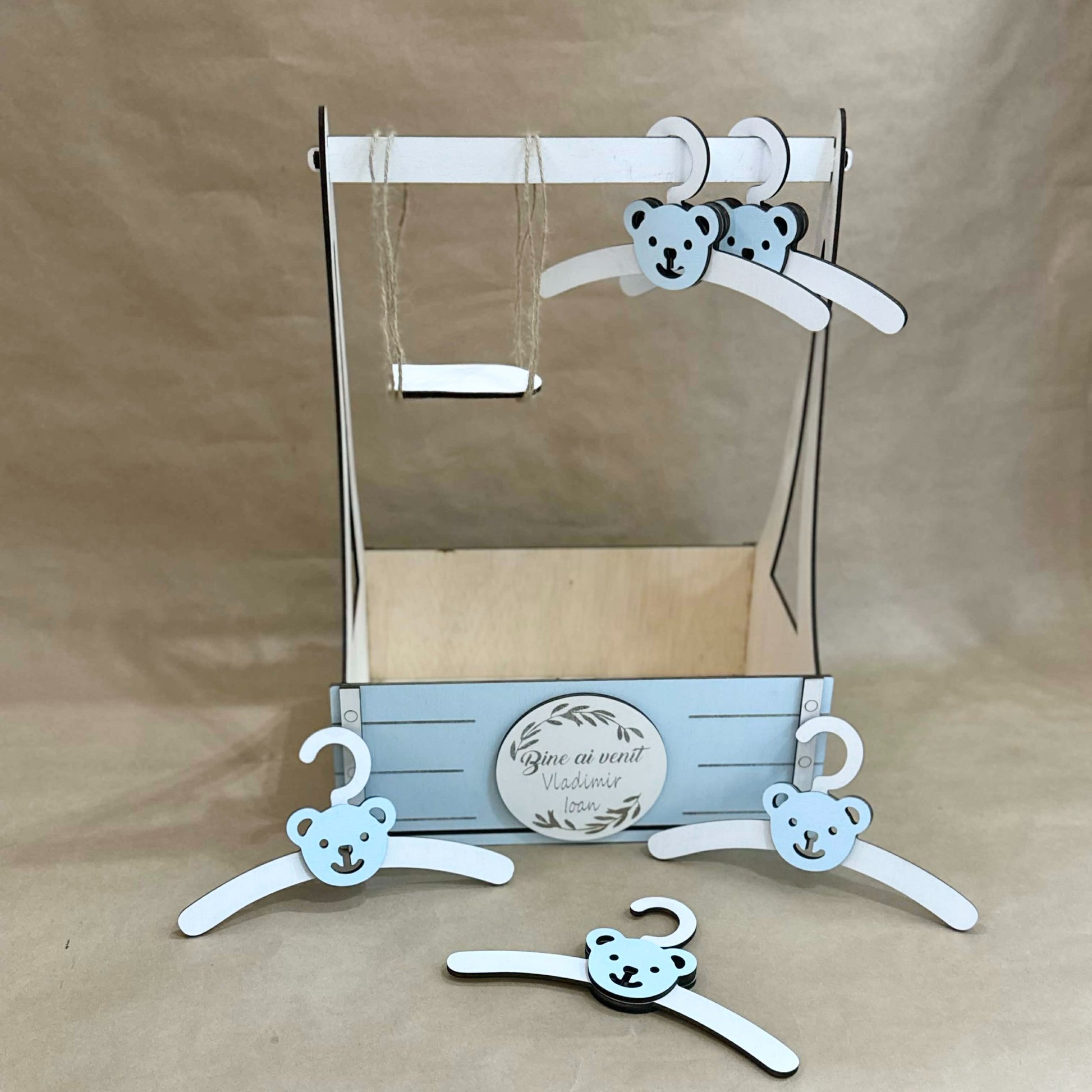 Cufar din lemn in forma de cosulet personalizat. Umerase incluse. Personalizare inclusa. Se poate realiza pe diferite culori