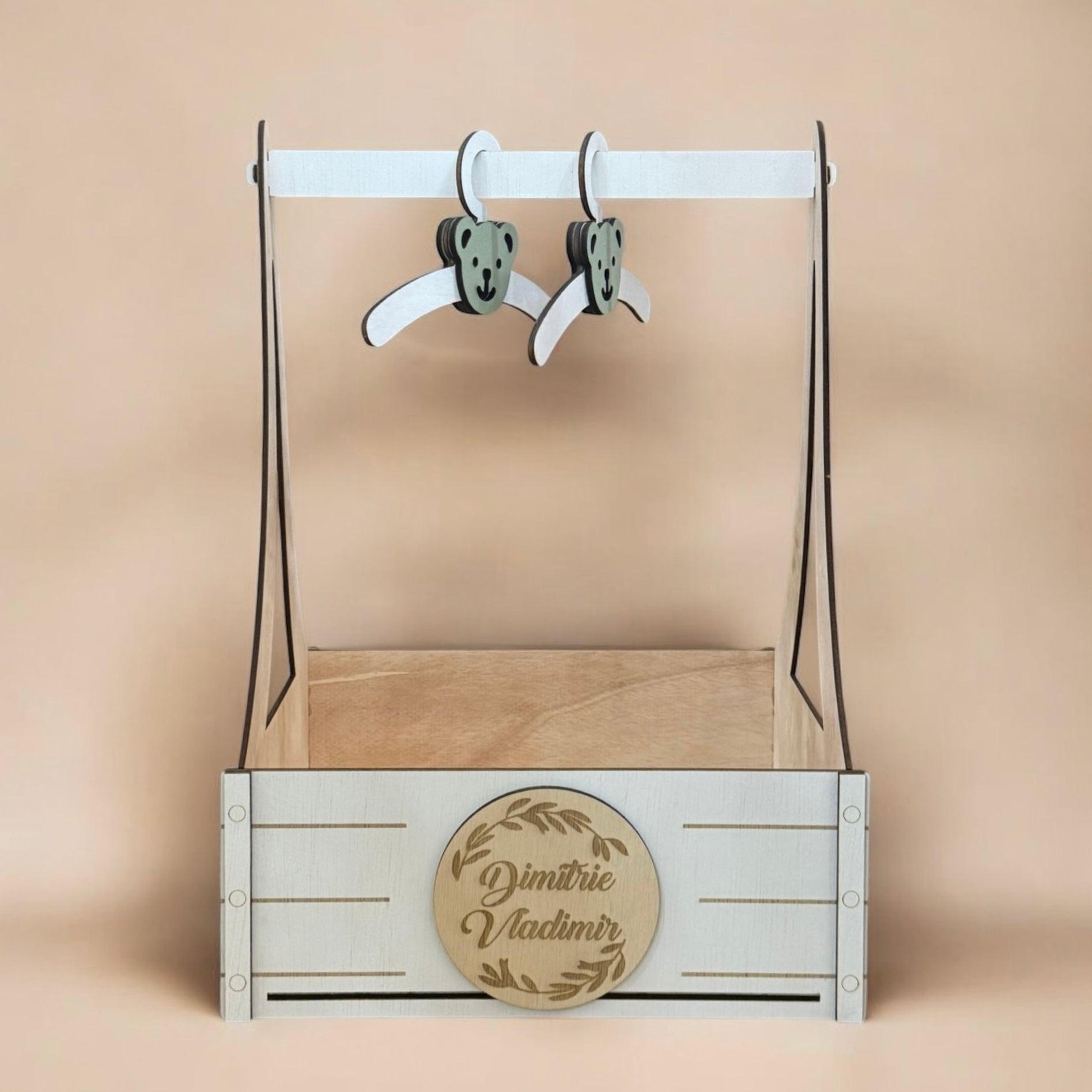 Cufar din lemn in forma de cosulet personalizat. Umerase incluse. Personalizare inclusa. Se poate realiza pe doferite culori
