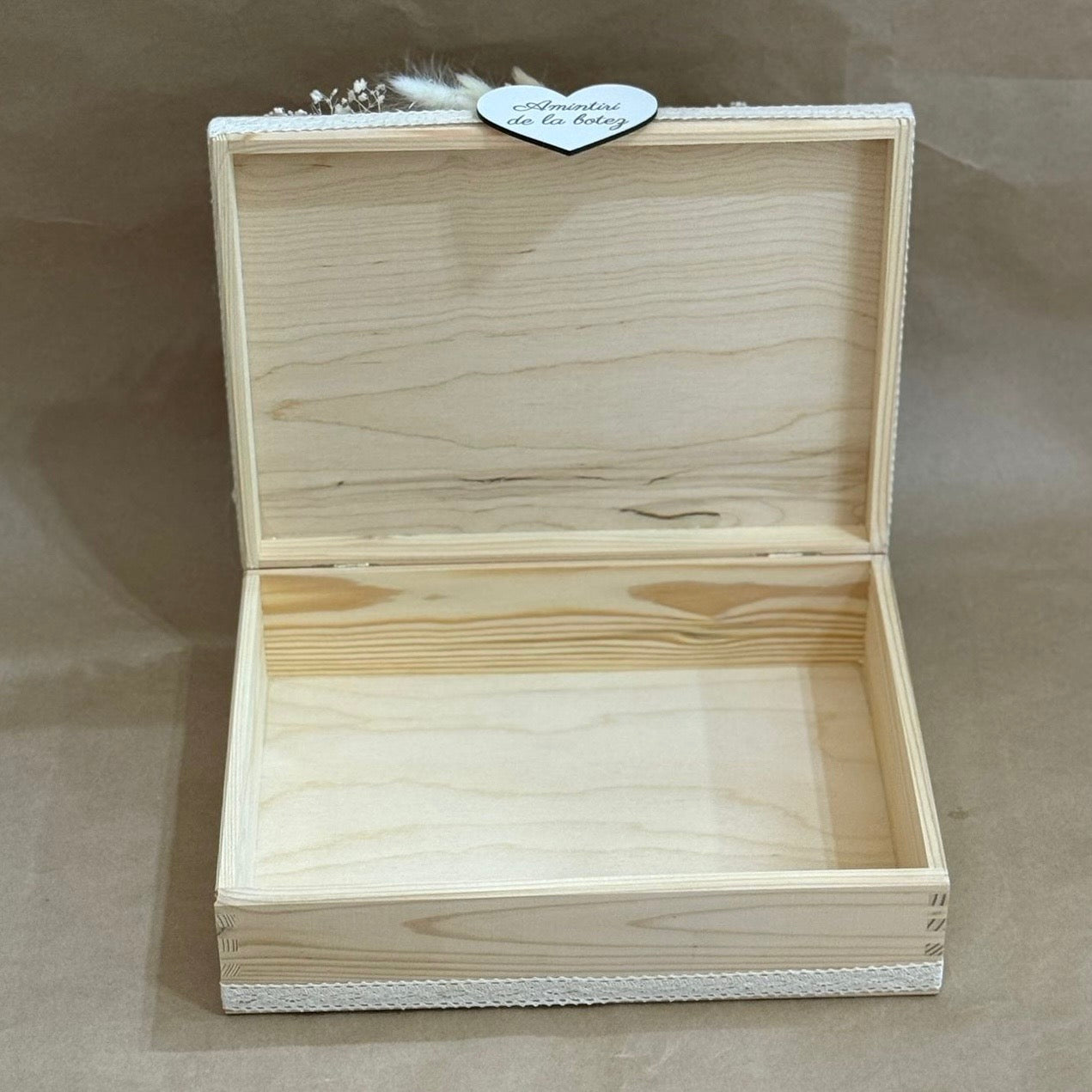Cufar elegant din lemn, personalizat cu nume, text si grafica la alegere – perfect pentru trusoul de botez sau ca piesa deosebita pentru pastrarea amintirilor. Designul premium si textura fina transforma acest cufar intr-un accesoriu de efect la orice eveniment.