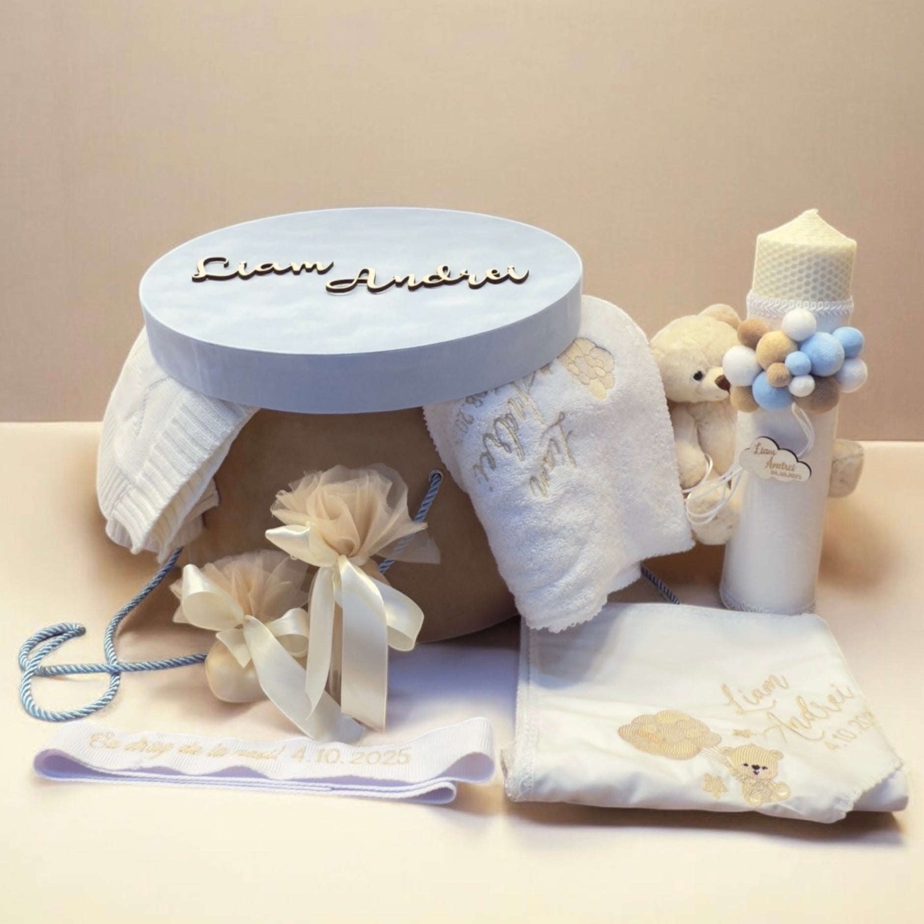 Cufar, trusou, lumanare si paturica personalizate Liam