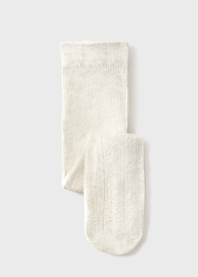 Contine bumbac organic. Dresuri tesute stramt pentru nou-nascut cu talie elastica pentru o mai buna ajustare. Elemente decorative: motive ajurate.