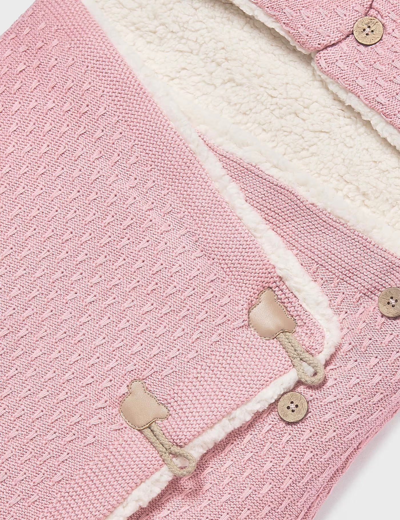 Sac pentru carucior, moale si placut la atingere. Conceput pentru a proteja bebelusul nou-nascut si pentru a se adapta oricarui tip de carucior. Inchidere laterala cu nasturi. Tesatura tricotata, moale si placuta la atingere. Corp interior captusit cu blana fina si moale.