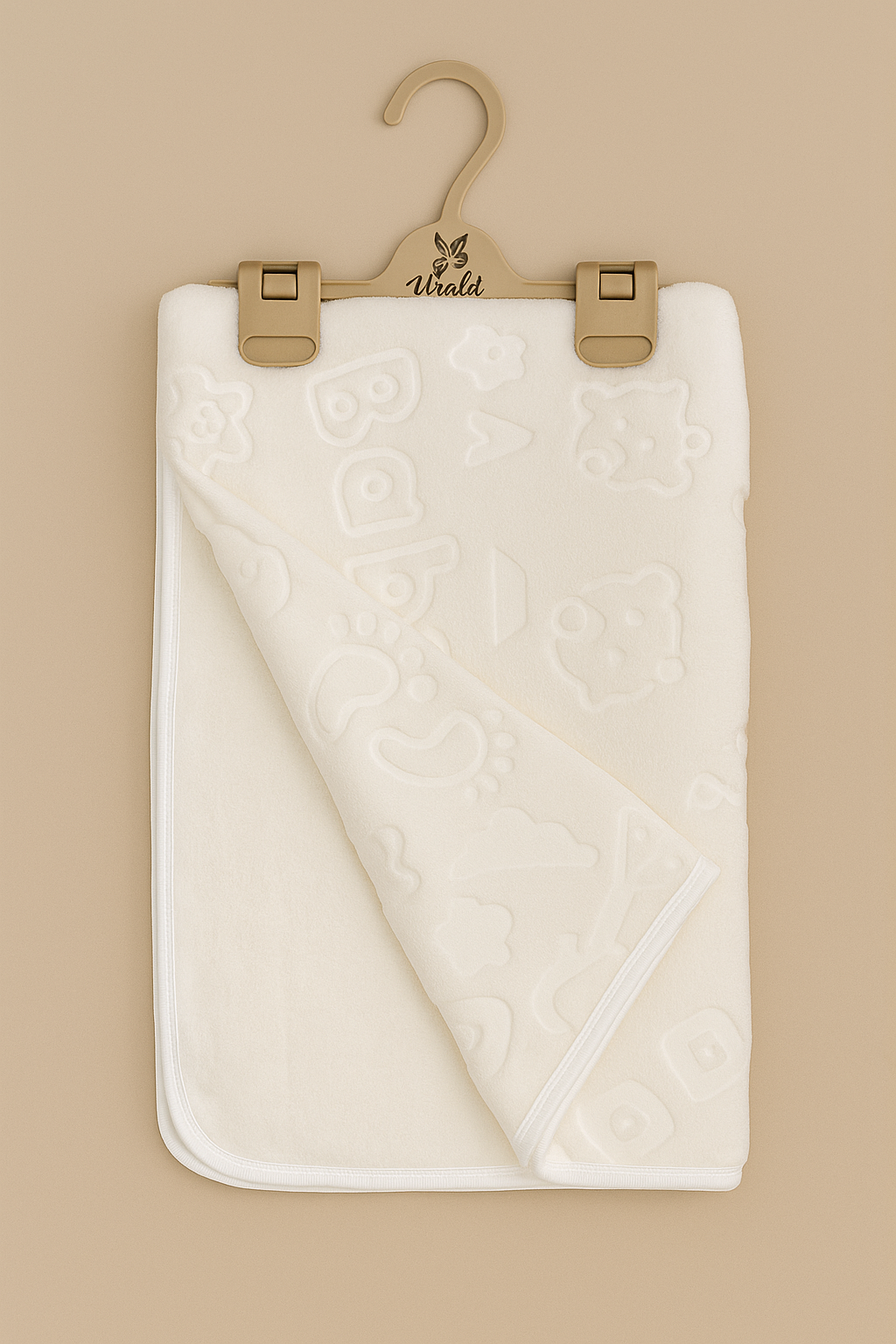 Paturica cu doua fete, una simpla si una cu modele in relief de stelute, morisori, inimioare, biberon, suzeta si landou. Paturica super groasa si pufoasa potrivita pentru sezonul rece.