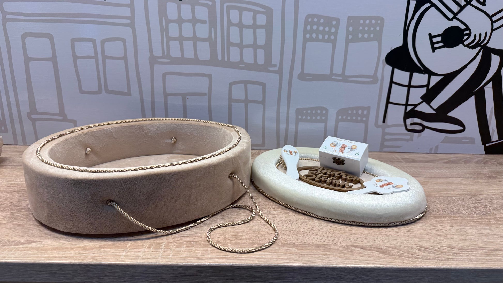 Compozitie: set tavita cutie catifea accesorii din lemn