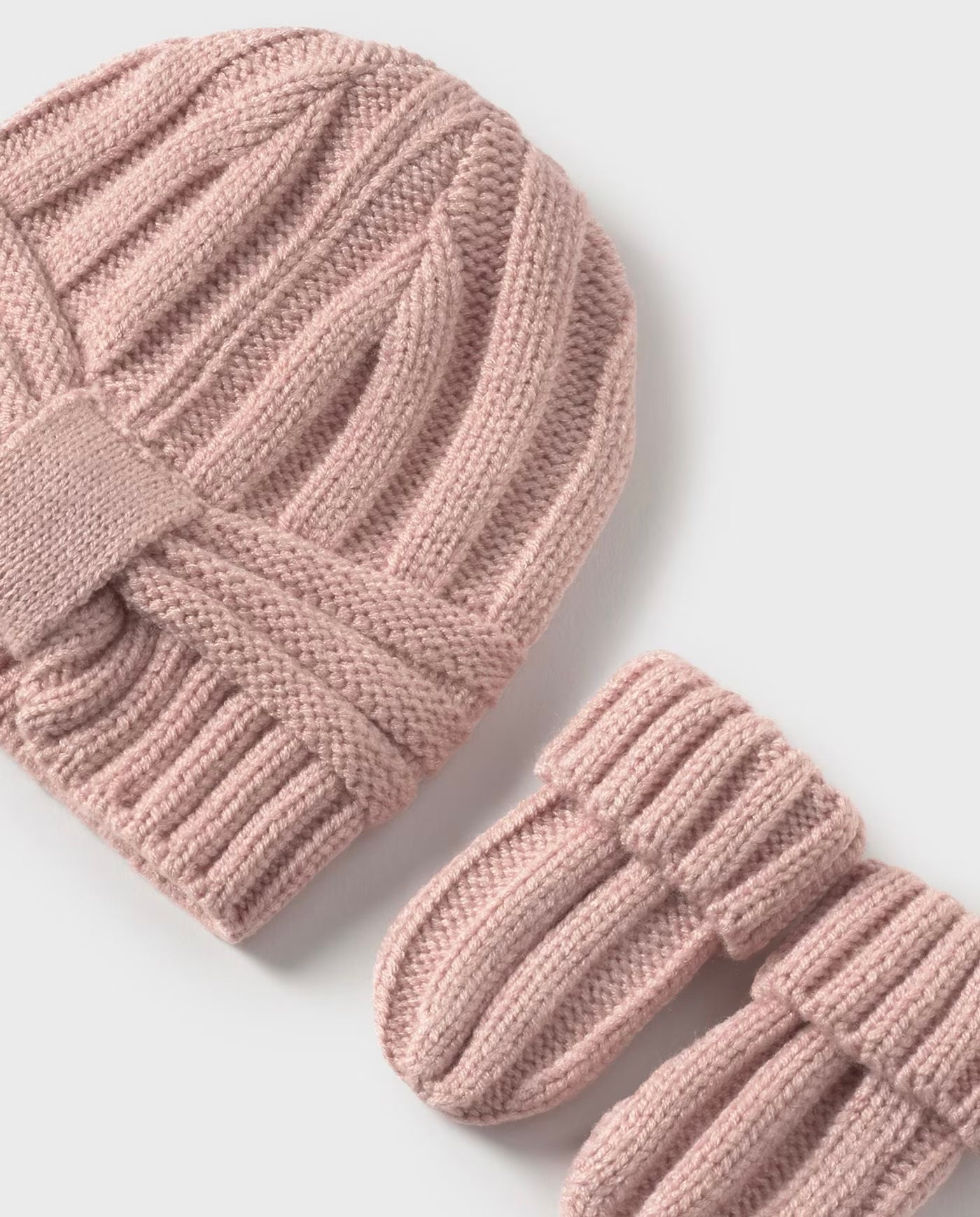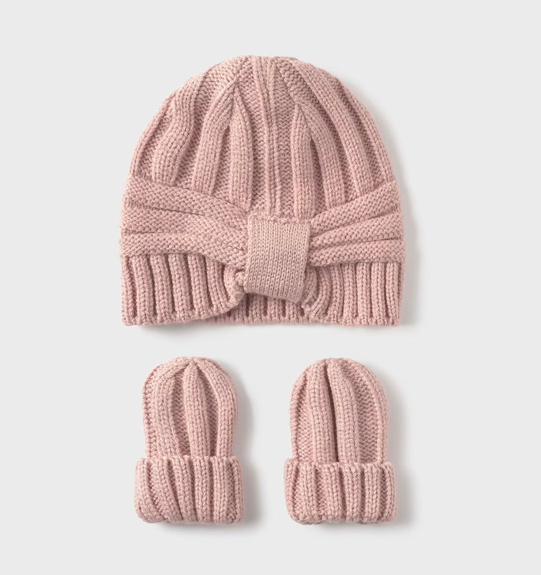 O pereche de manusi pentru bebelusi, ideale pentru primele lor zile de viata. Tesatura cu nervuri.