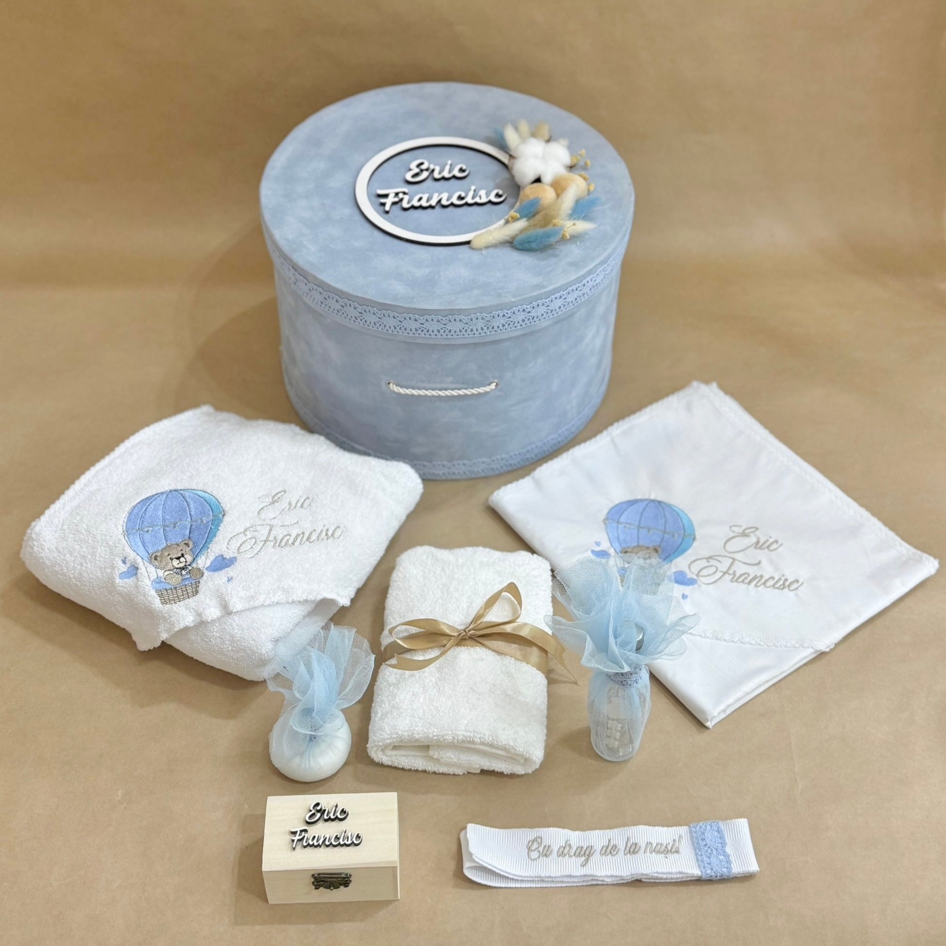 -cufar din carton catifelat personalizat cu litere 3D
