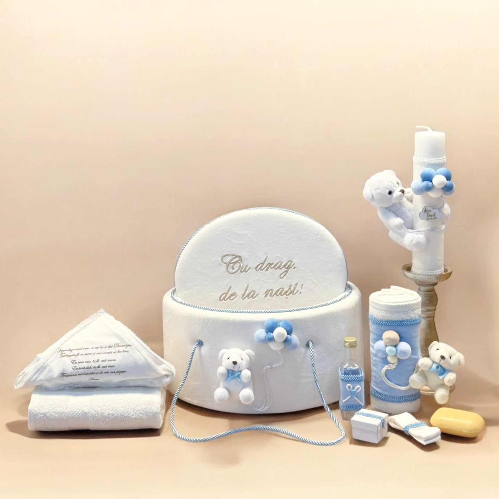 Pachet pentru botez nou-nascut fetite sau baietei complet personalizat ce este compus din: