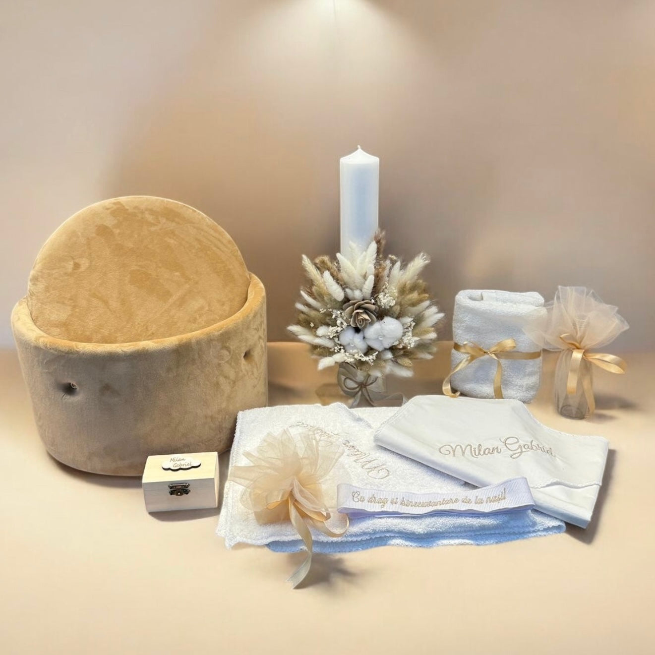 Set complet pentru botez potrivit pentru fetita sau baiat sau baietei ce include: