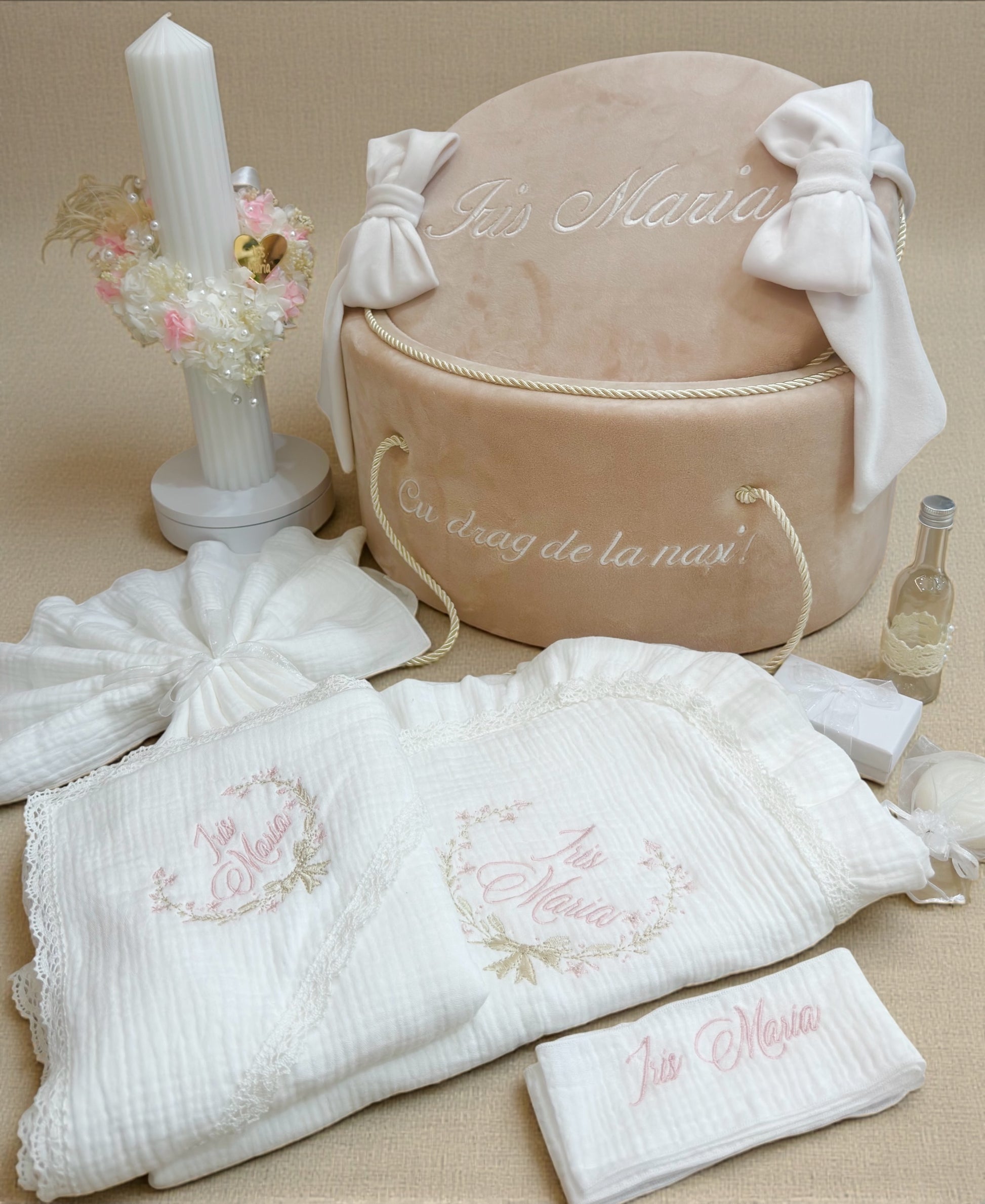 Set complet pentru botez potrivit pentru baiat sau fetita ce include: