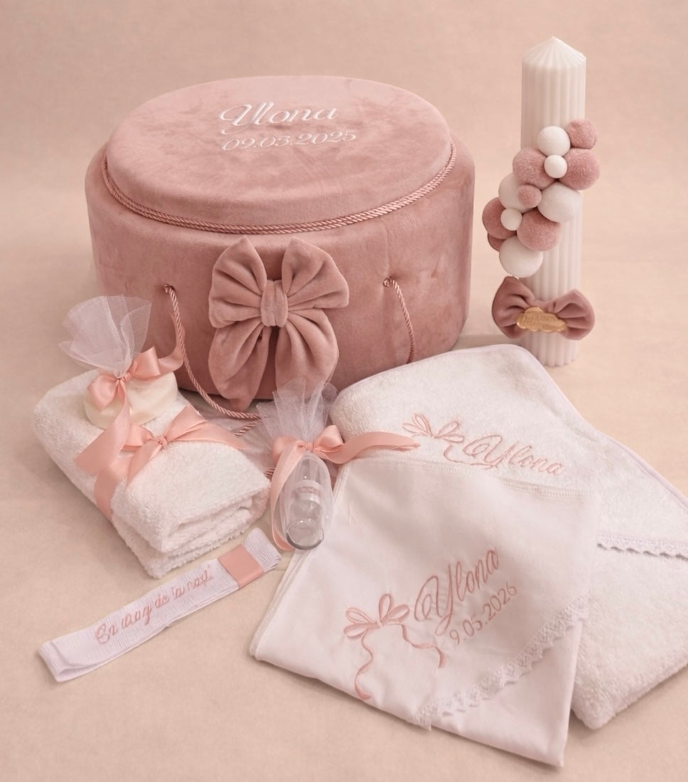 Set complet pentru botez potrivit pentru fetita sau băiat ce include: