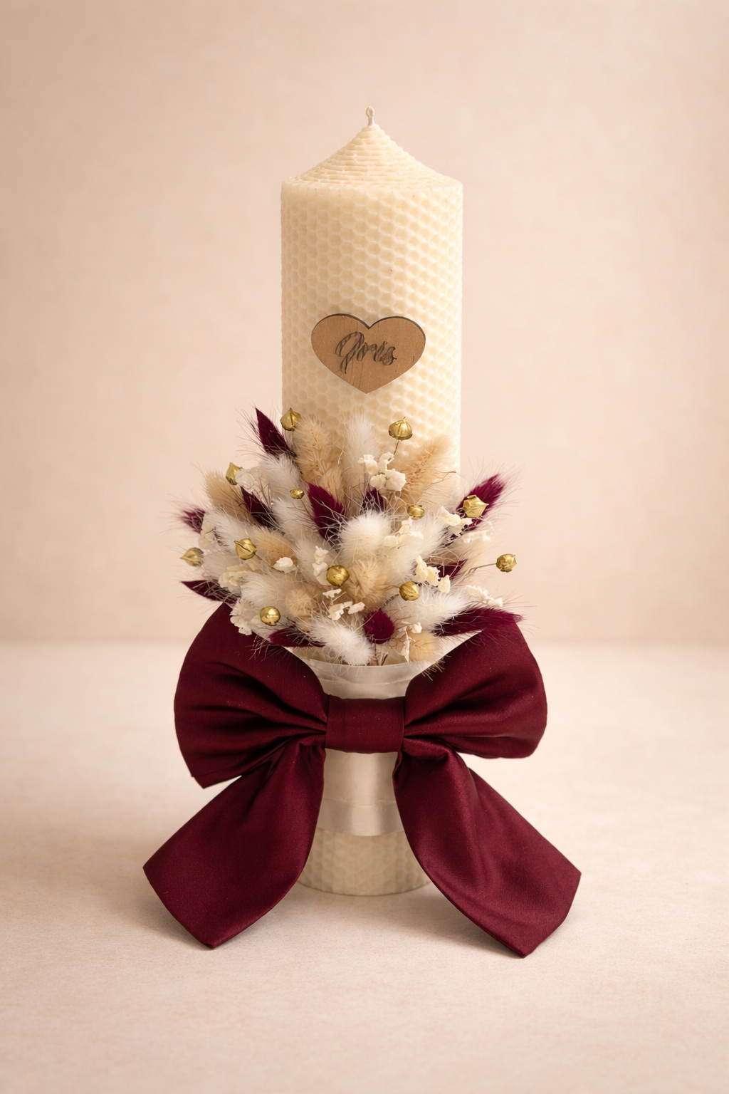 - lumanare din ceara naturala cu ornament din flori si fundita