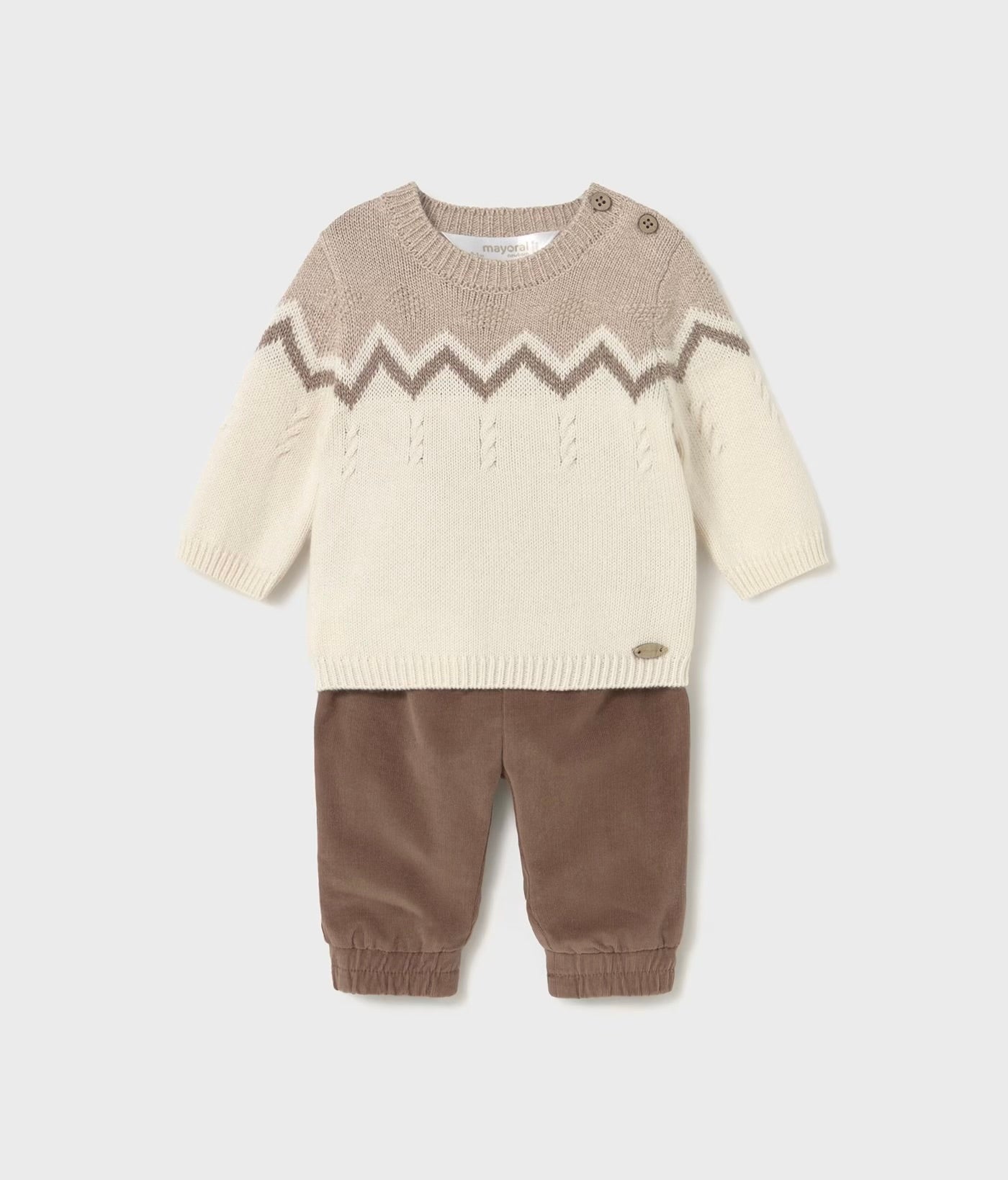 Set pentru nou-nascut format dintr-un pulover si o pereche de pantaloni lungi.