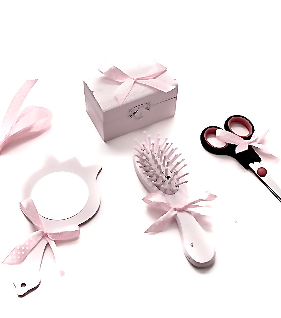 Tavita mot din catifea cu accesorii : cutiuta, foarfece, oglinda si pierie asortate pentru modelul dat .
