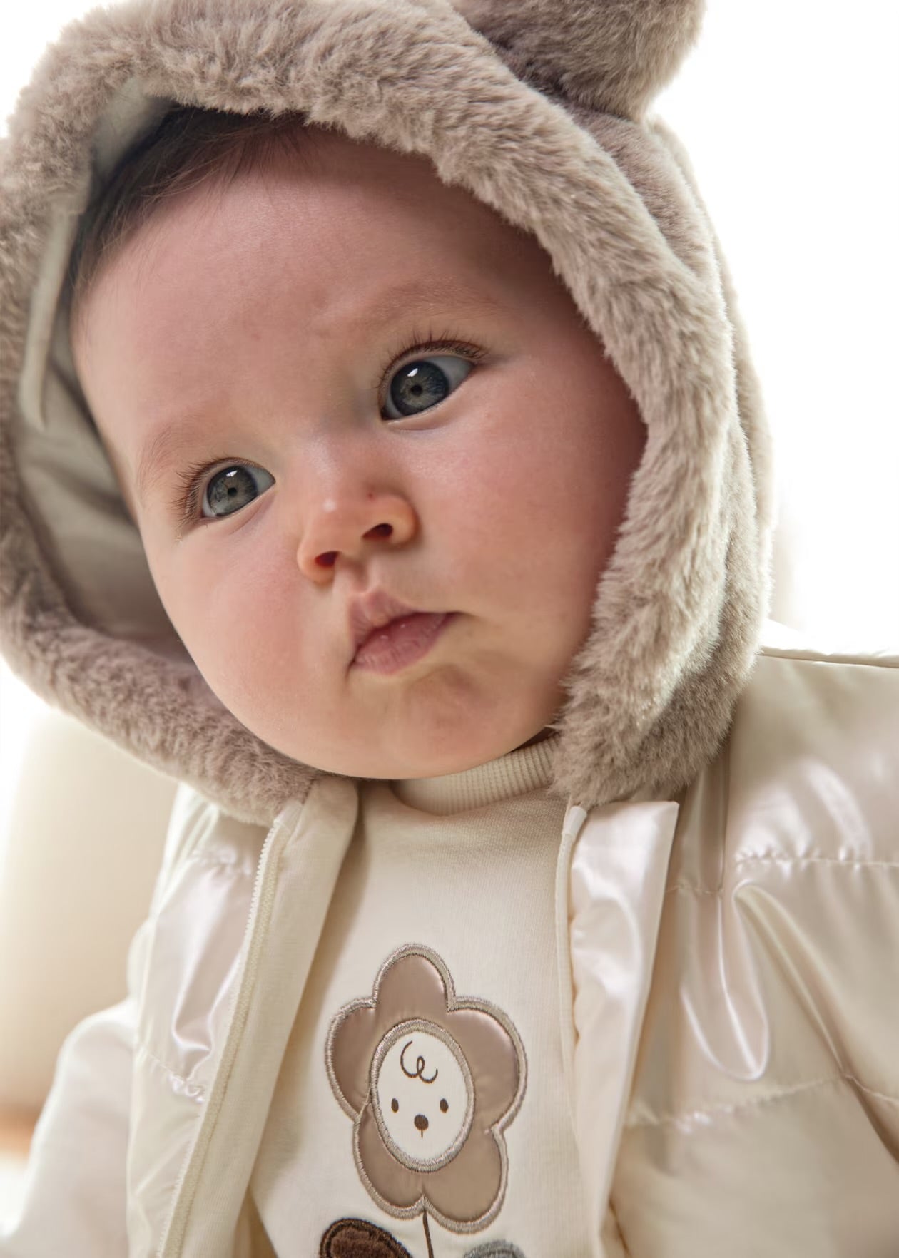 Seul este compus din bluzita, vestuta din fas cu gluga din blana si pantalonasi tip colanti