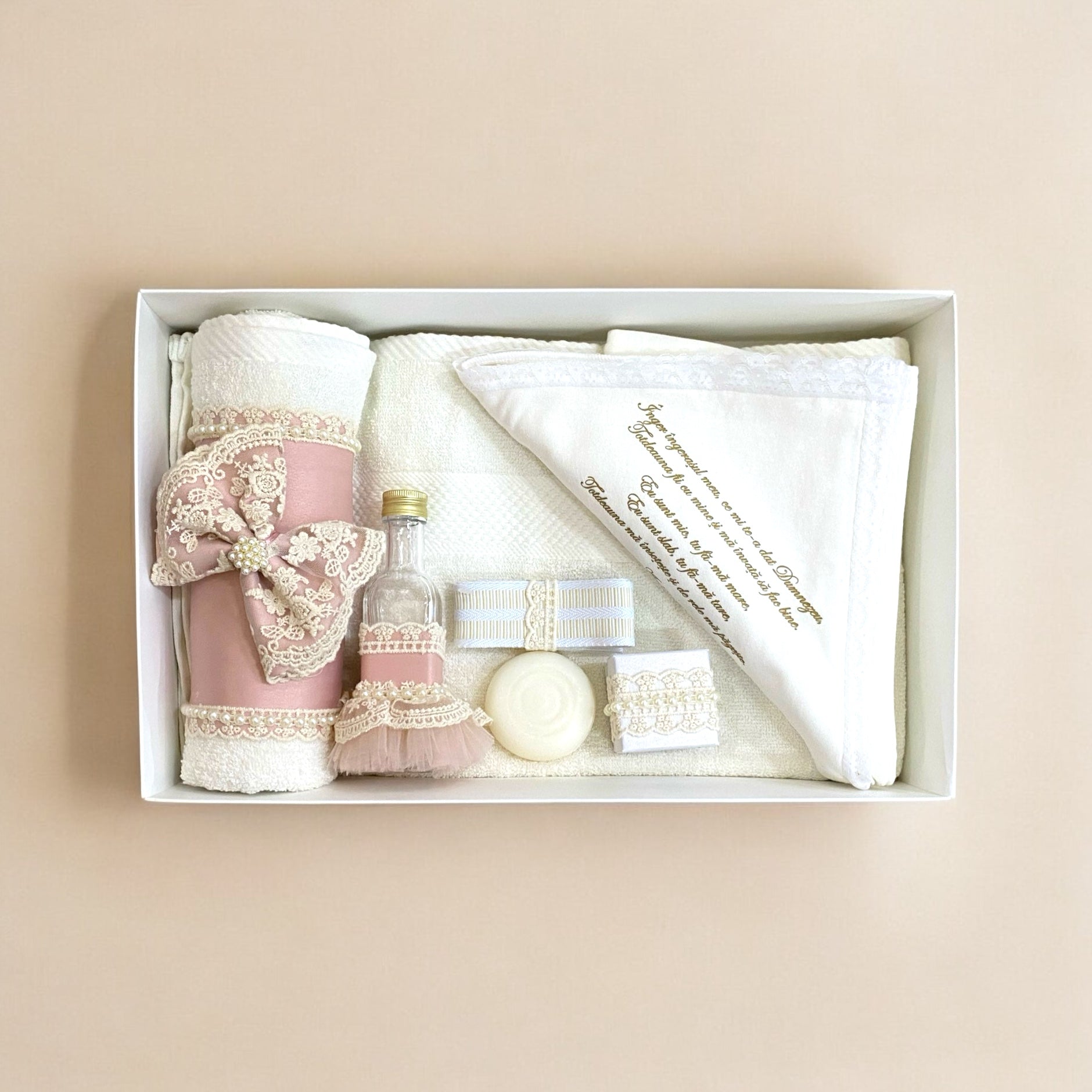 Trusoul este compus din prosop bebe, prosop preot, crisma/ panza mir, fasa, sapun, cutie prima suvita, sticluta mir.